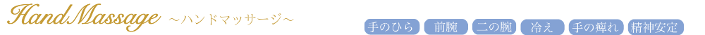 手や腕は首肩と関係が深いので、首肩コリの症状を悪化させている事も多くあります。また手のマッサージは、精神のリラックスにとても効果的です。オイルを使った手と腕のマッサージをぜひお試しくださいませ。