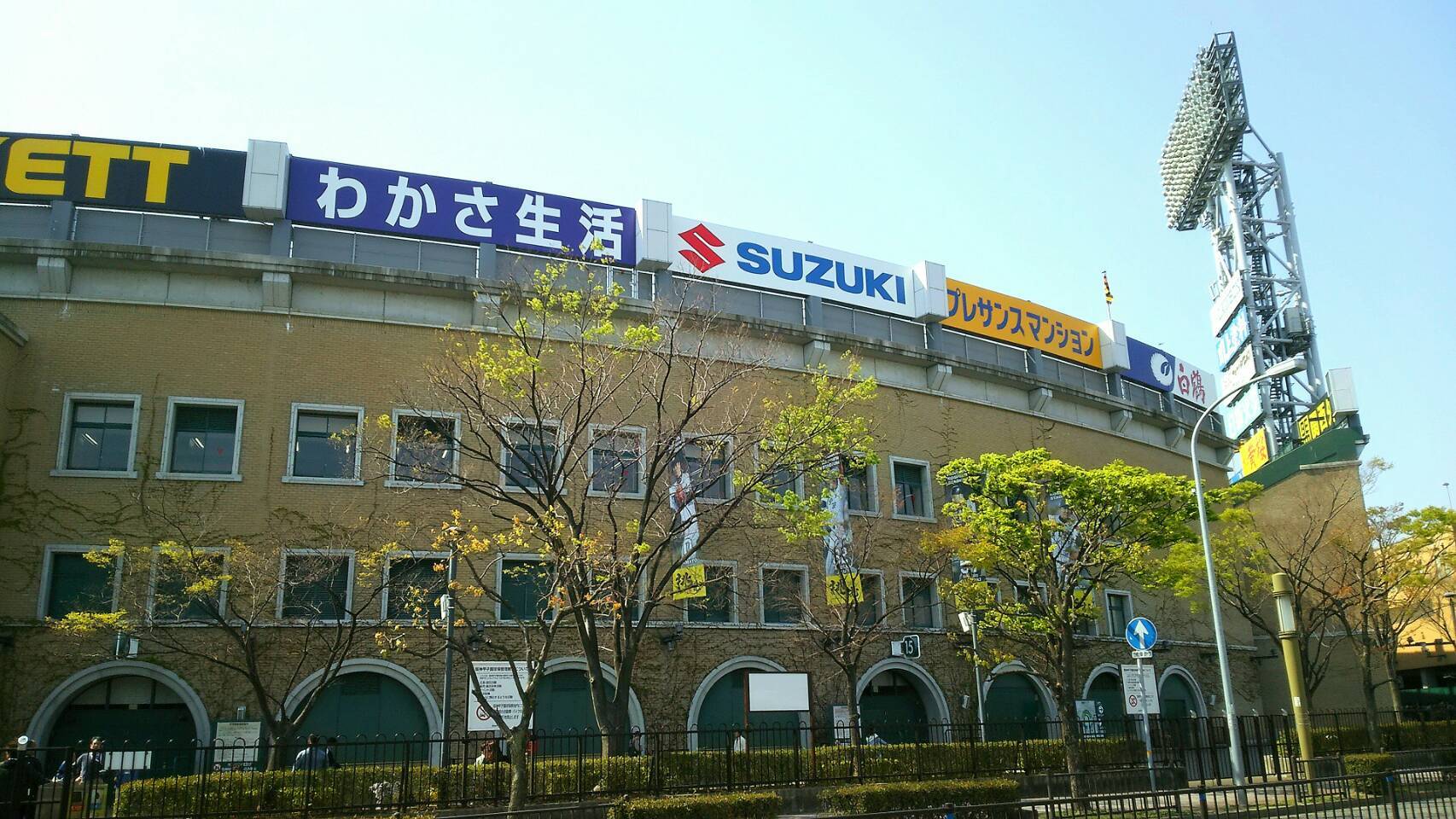 南に歩いていくと、道路を挟んで右手には甲子園球場が見えます。
