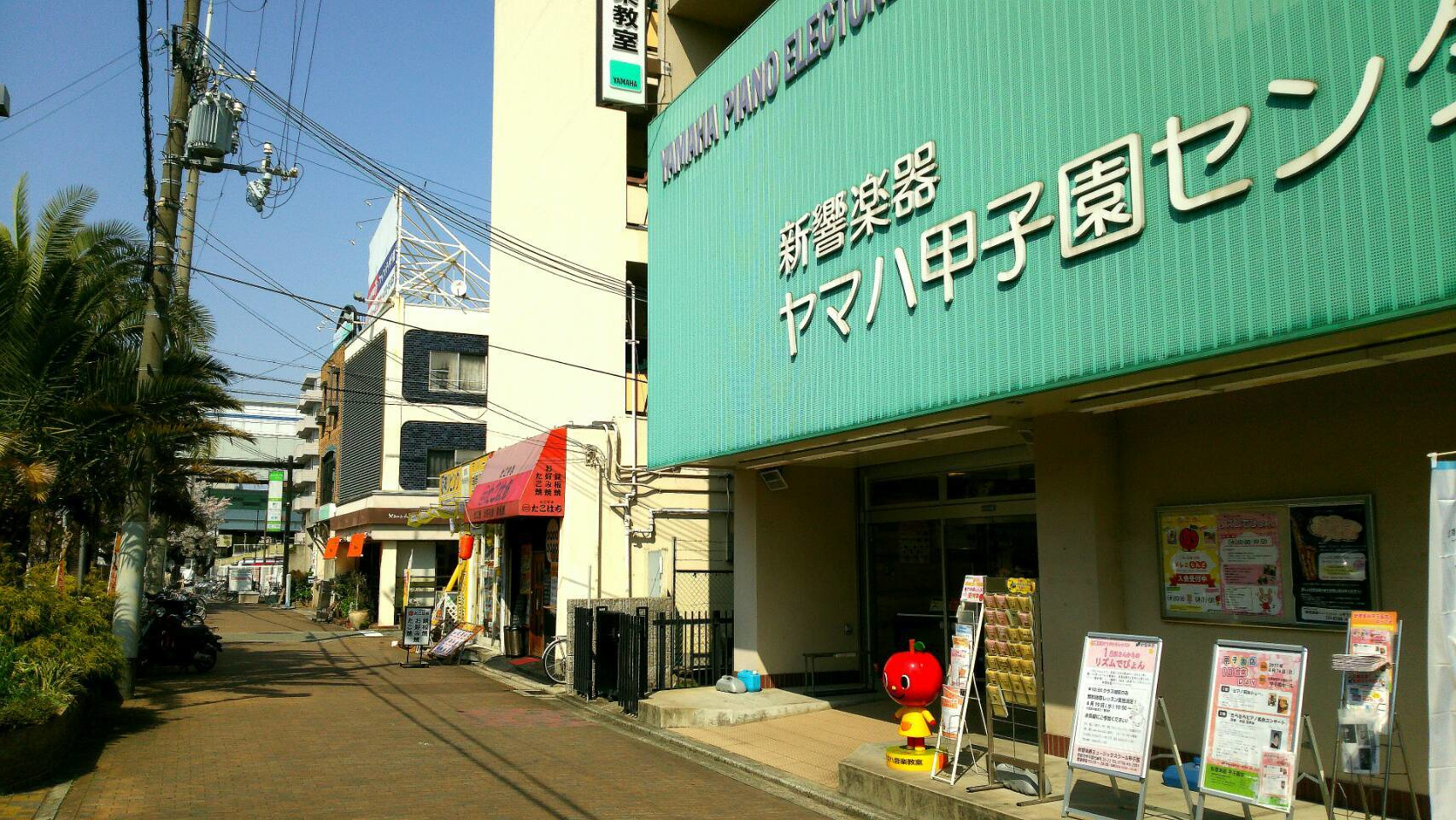 中華料理 万里さんを右手に見ながら北へ歩いて行くと、ヤマハ甲子園楽器センターがあり、さらに北へ歩きます。