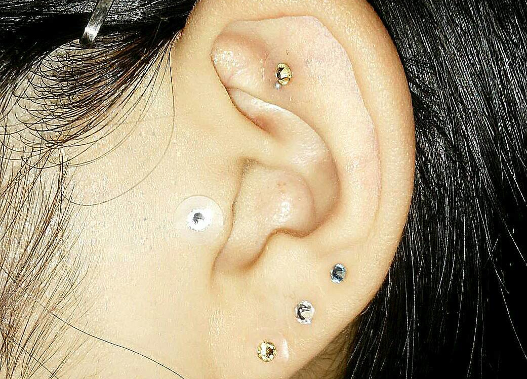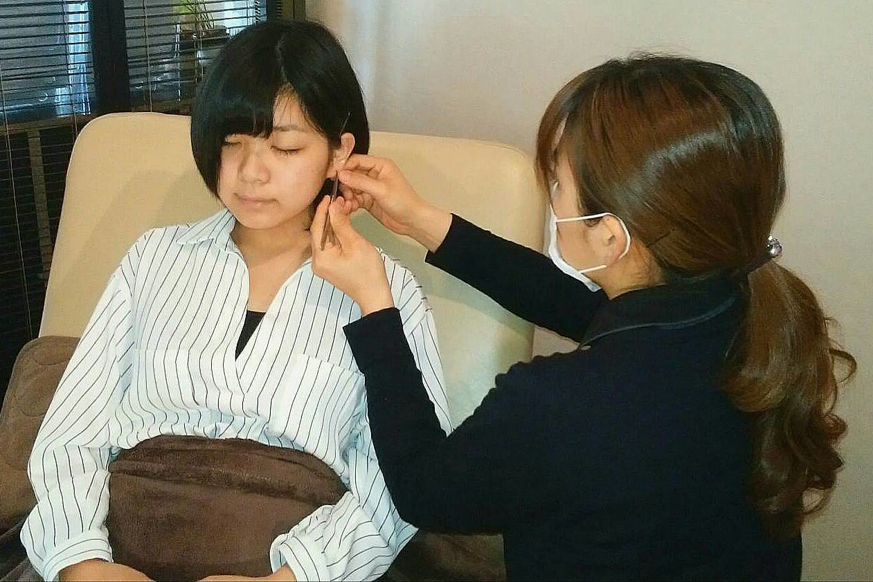 耳にあるツボを刺激したり、耳やその周辺を柔らかくもみほぐしたり、 耳のツボにチタン粒を貼り数日間刺激を持続させると、体のコリや頭痛、精神安定などに効果があるといわれています。一般的には耳ツボダイエットとしてよく使われ、食欲の制限、お顔のリフトアップにも効果があるといわれています。